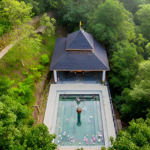 Participate in sacred rituals, meditation, and puja ceremonies at our Yagya Shala and tranquil Kund Waterbody, designed to enhance your spiritual wellness and mindfulness journey.