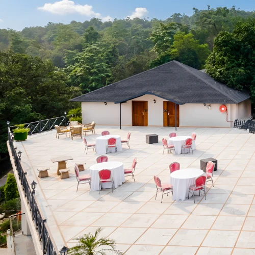 Our resort features versatile banquet halls and expansive lawns perfect for weddings, receptions, and corporate gatherings. The Kauthik Banquet Hall provides a sophisticated indoor setting for elegant ceremonies, high-profile meetings, or festive celebrations, ensuring every event is flawlessly executed. For outdoor ceremonies, the Triveni Lawn and Athekeli Lawn offer panoramic valley and mountain views, creating a stunning backdrop for destination weddings, pre-wedding events, and cultural festivities.